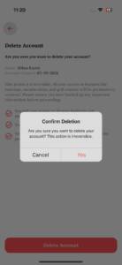 4. You will see a final confirmation screen. Tap the red “Delete Account” button to confirm.